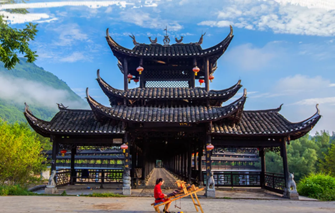 一座“Y”型凉亭桥,一桥跨三河,一桥连三寨。古寨里,民居依山而建,黄墙青瓦,飞檐翘角。村民唱着古老的土家山歌,迎接客人。