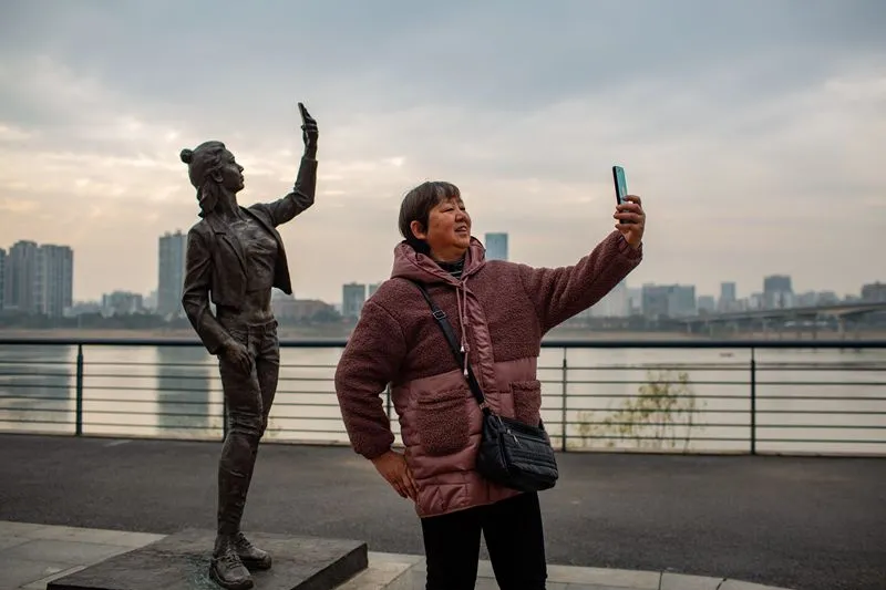 (株洲市民在湘江风光带惬意自拍。王伟 摄)