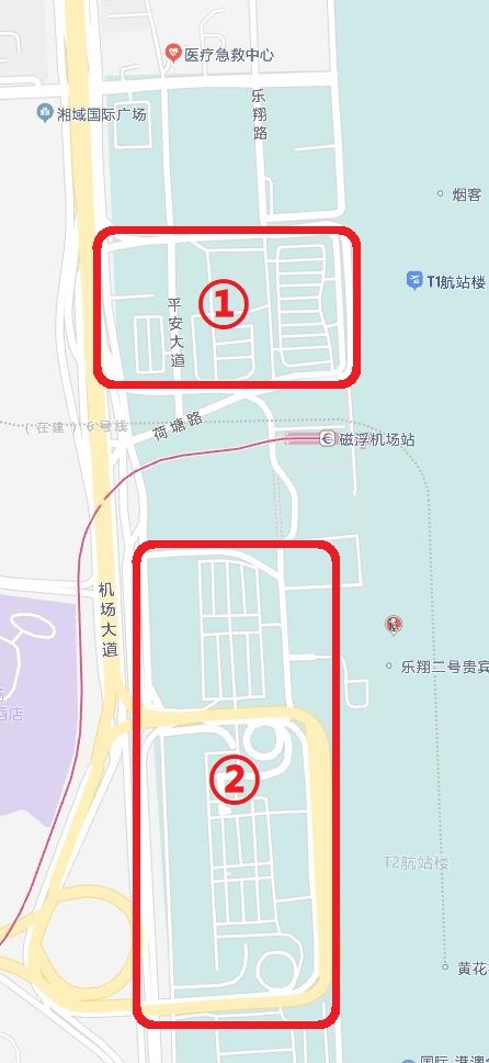 注:1.①T1航站楼到达层、出发层、T1航站楼停车场;②T2航站楼到达层、出发层、T2航站楼停车场严禁上客,出租车通道除外。