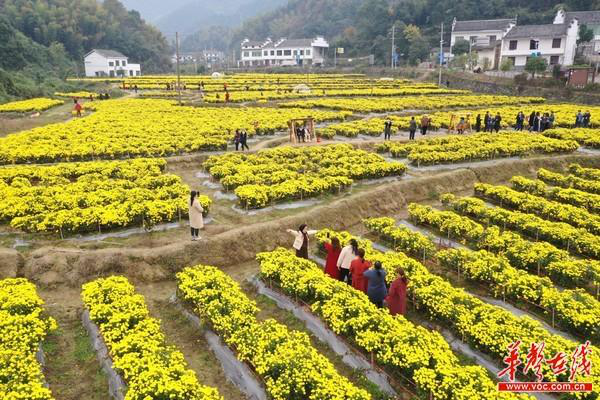 (初冬时节,皇菊种植基地为醴陵隆兴坳村铺上金色花海。傅聪 摄)