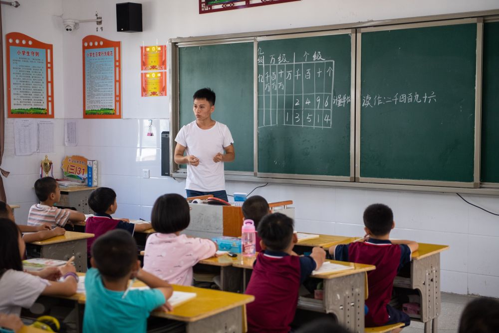 9月9日,在湖南省张家界市桑植县芙蓉学校,教师王伟在给学生上课。新华社记者 陈思汗 摄
