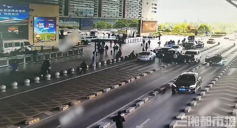 当天中午12时05分,旅客刘女士乘坐一辆白色小车到达长沙南站西广场落客平台,下车后,刘女士走到轿车尾部,接过司机递过来的行李后,便蹲在行车道旁清理行李箱中的物品。