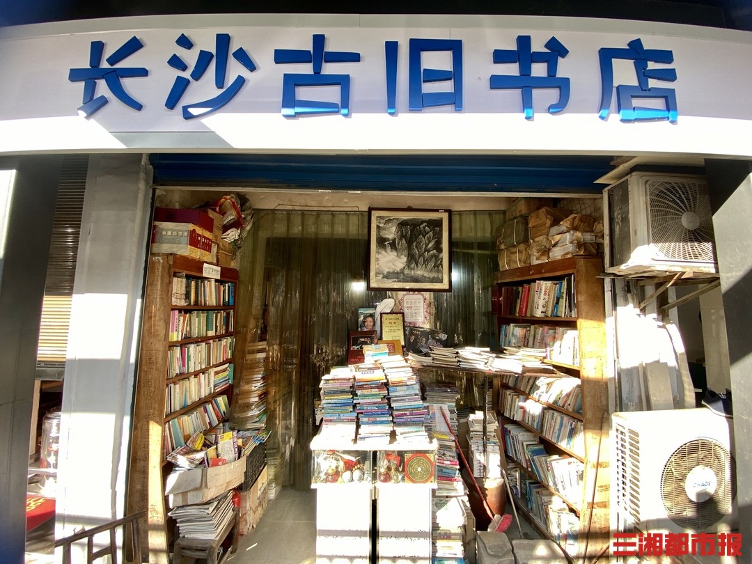 对面是人声鼎沸的医院,旁边是食客不断的饭店,王小平的经营的“长沙古旧书店”安静地坐落在繁华之中。不足20平米的店面内,堆满了各类书籍,王小平静静地坐在小板凳上,翻阅着手中的书籍。在店外繁华嘈杂的衬托下,老书店显得有些格格不入。