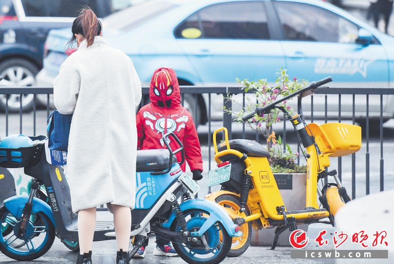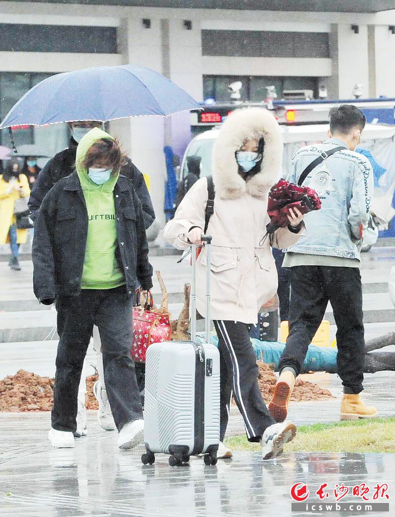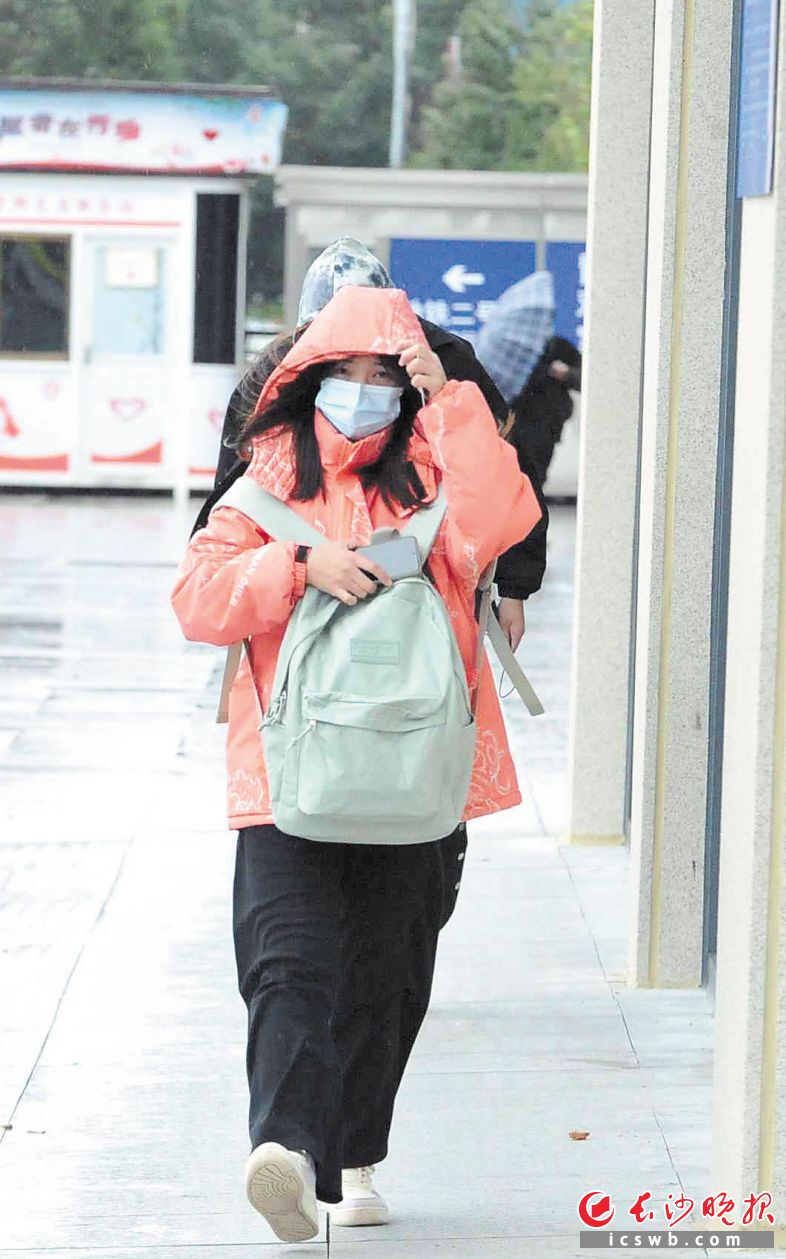 昨天下午,长沙锦泰广场,市民在寒风冷雨中匆匆走过。 长沙晚报全媒体记者 贺文兵 摄