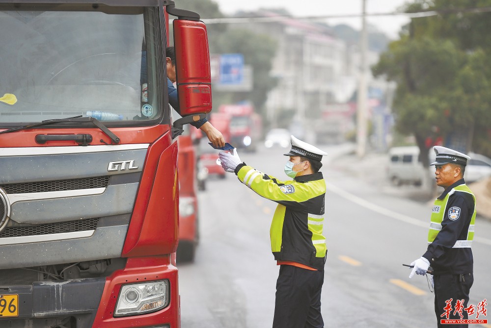 11月1日,交警在G320线双峰段开展货车超载违法行为专项整治行动。今年以来,该县公安局交警大队坚持治理超载超限车辆常态化、无死角,并引入现代科技手段对过境车辆进行便捷式查验,同时加大宣传力度增强驾驶员安全意识,进一步消除道路安全隐患。湖南日报全媒体记者 辜鹏博 通讯员 宋秧贵 摄影报道
