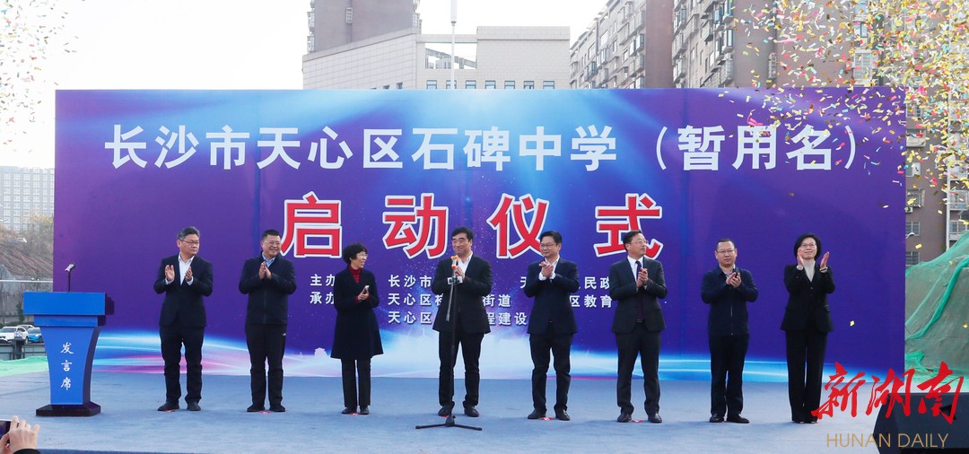湖南日报·华声在线12月23日讯(记者 张福芳 通讯员 鲁怡欣) 今天上午,长沙市天心区石碑中学(暂用名)项目建设启动仪式在长沙市天心区桂花坪街道举行。石碑中学项目建设的启动,是天心区全面落实“三高四新”战略定位和使命任务、打造长株潭融城先行区、推进教育优质均衡发展的重要举措,标志着长沙南部新城片区优质教育发展踏上了新的台阶。