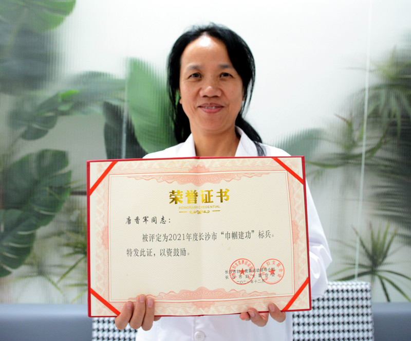 充分发挥妇女典型的示范引领作用,进一步激发广大妇女“巾帼心向党·奋进新征程”的热情和动力。12月20日,长沙市妇联召开2021年长沙市“巾帼建功”培训会暨结对帮扶活动,会上对30个“巾帼文明岗”、20个“巾帼建功先进集体”负责人以及30名“巾帼建功标兵”进行了表彰。长沙市天心区人大代表,广厦新村社区卫生服务站党支部书记、站长唐香军获评2021年度长沙市“巾帼建功”标兵荣誉称号。