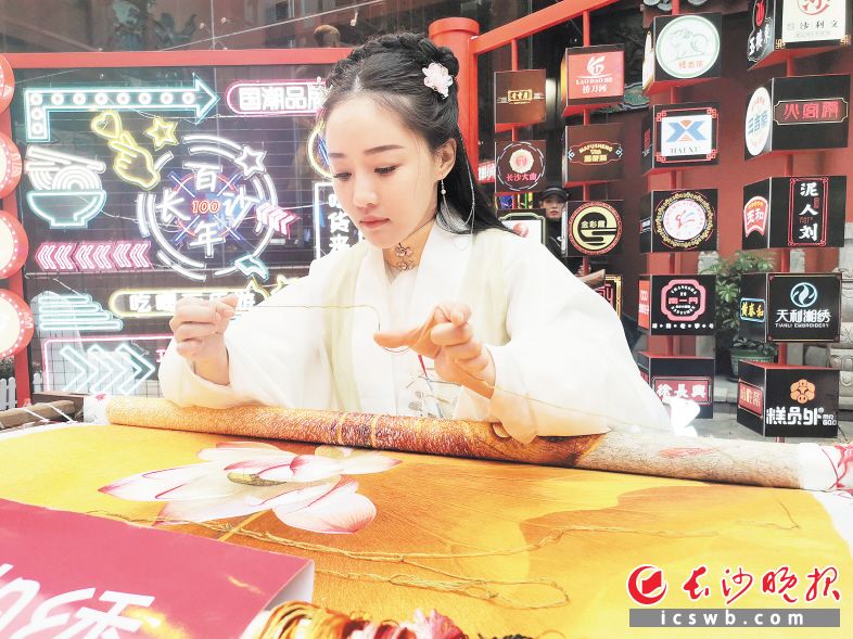 活动现场的湘绣表演。均为长沙晚报全媒体记者 刘捷萍 摄