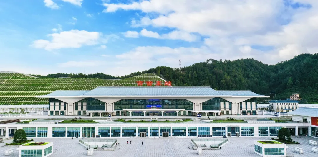 纵观高铁全线,车站、隧道和桥梁基本都建在大山中、悬崖边、田野上,在云雾中若隐若现,宛如“云端高铁”。