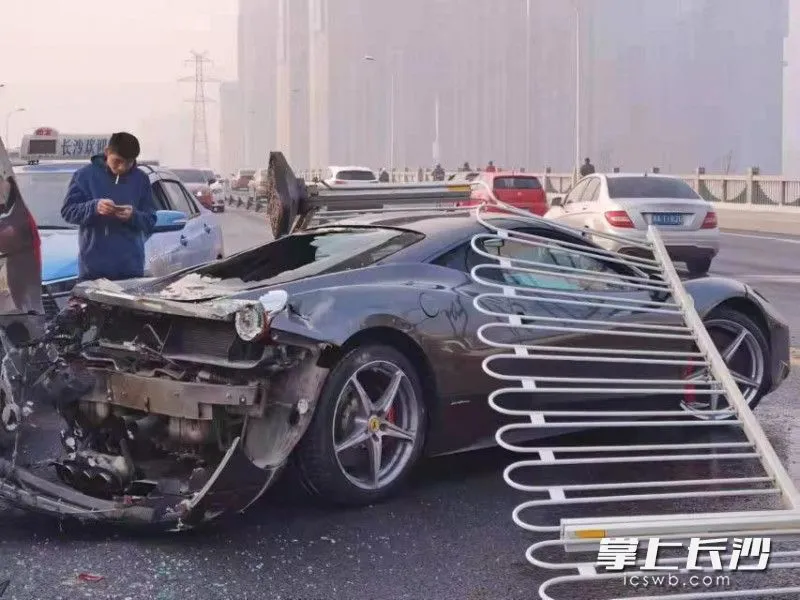 交警部门在通报中指出,11月29日8时11分许,安某某驾驶湘BZ33**号法拉利轿车(临时号牌)沿开福大道由北往南行驶至车站北路浏阳河桥路段,因其在超车时操作不当,发生车辆失控后与中央隔离护栏以及对向行驶的湘AH68**小型客车相撞,造成湘AH68**小型客车驾驶人轻微受伤,两车不同程度受损的交通事故。