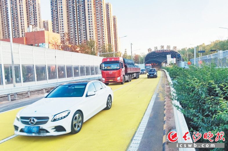 11月30日,长沙绕城高速西南段梅溪湖隧道提质改造完工,全面放开通行。梅溪湖隧道集高速通道与城市快速干道两种功能于一体,隧道出入口铺设了300米长的黄色减震防滑带。