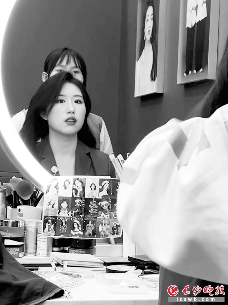 海马体照相馆内,化妆师正在给顾客刘畅做妆发。受访者供图