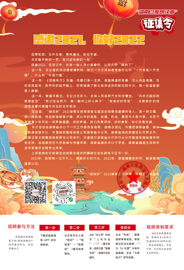 湖南日报朗读者征集令丨感谢2021,你好2022