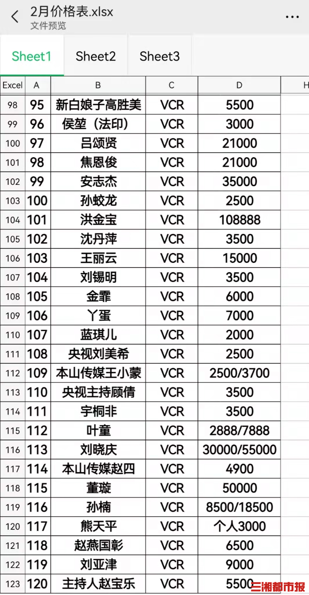 而高端版本的祝福视频价格则与普通版天差地别。在一位卖家提供的一份明星价位表中,不乏多位知名艺人,如张信哲、孙楠、刘晓庆、洪金宝等,价格均超过万元,其中注明洪金宝的祝福视频价格为108888元。此外,极个别商家还提供运动健将的祝福视频,但价格较高。
