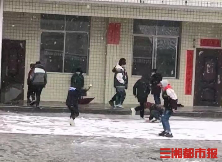 当天上午,邵阳市隆回县沙子坪九年义务制学校,操场上已经有了较厚的积雪。下课铃一响,孩子们一拥跑向操场,撸起袖子,打起了雪仗。刺骨的寒风,也不能阻挡他们享受雪花纷飞带来的快乐。