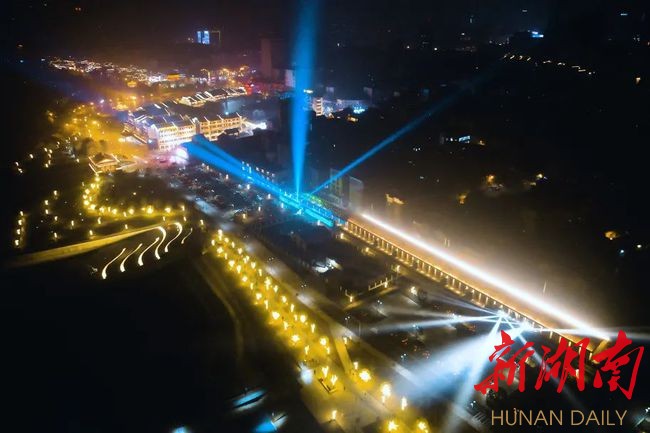 湖南日报·华声在线2月1日讯(记者 徐典波)除夕之夜,洞庭湖畔,岳阳市洞庭南路、汴河街灯光璀璨。最引人注目的是,千年古塔首次上演“灯光秀”,慈氏塔被灯光照亮,变幻出各种美丽图案,投射出各种吉祥文字,让岳阳市民和游客的眼睛一亮。