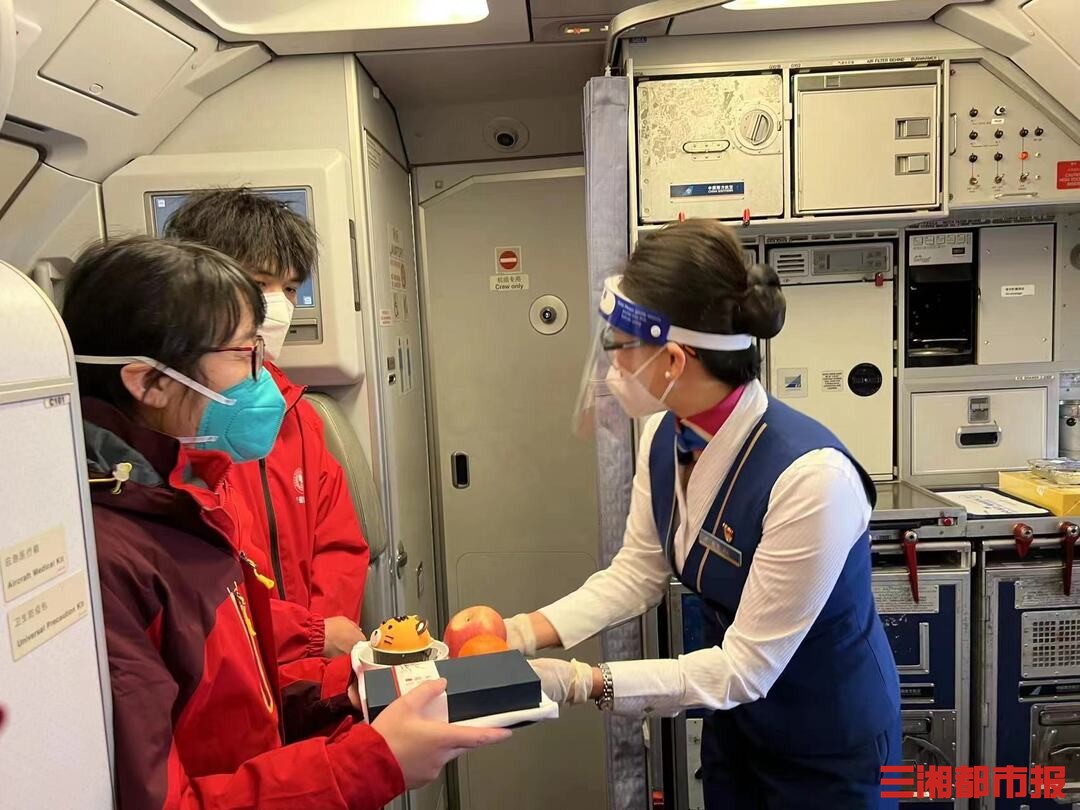 据悉,这也是继南航湖南分公司4月初运送湖南医疗队支援上海、吉林之后,又一次大规模的医疗队运输保障任务。飞行过程中,南航工作人员向医护人员赠送橙子和苹果,期待他们平安归来。