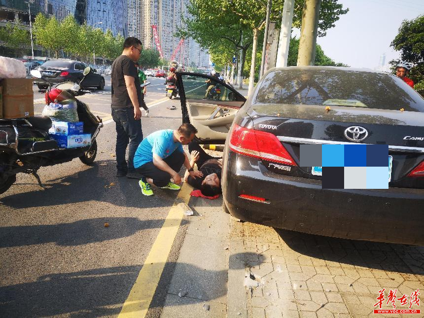 4月10日下午16时,长沙特巡警支队作战训练大队大队长曾海波沿长沙潇湘中路跑步,途径距离裕湘纱厂200米处时,发现一辆黑色丰田轿车发生事故,车头猛烈撞击了路边的一棵树,曾海波立即上前查看,并对受伤司机进行了救助。“事故车辆当时还在冒烟,车轮还在转动,车辆周围没有行人,只有往来的车辆。我意识到该车司机很可能受伤被困在了车里,救人要紧!”曾海波事后回忆,他第一时间拨打了120急救电话和122交警事故报警电话。