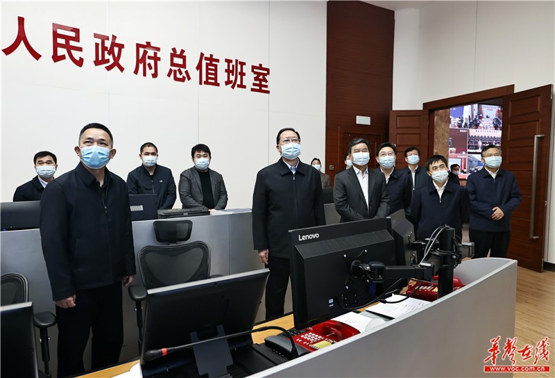 在省政府总值班室,毛伟明通过视频方式分别与省应急管理厅、省卫生健康委、省交警总队和14个市州连线,听取相关情况汇报,并检查调度全省重点路段景区、入湘通道卡口、机场、高铁站等疫情防控和安保值守工作。从调度情况来看,全省社会大局总体稳定,清明期间文明有序。