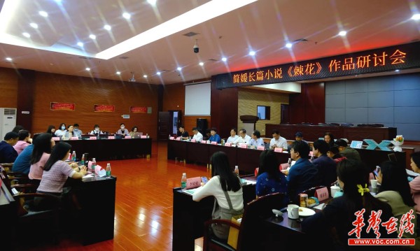 华声在线5月27日讯(记者 谢添翼 通讯员 田谧 刘勇)今日上午,湖南女作家简媛的长篇小说《棘花》研讨会在毛泽东文学院举行。研讨会不仅有数十名省内的领导和专家齐聚一堂,品鉴《棘花》,更有胡平、贺绍俊等省外学者通过书评的方式,一起探讨《棘花》讲述的故事及其艺术特色。