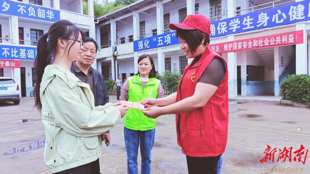23日上午,杏子菲尔手袋厂董事长向凤英,在护苗爱心会人员陪伴下,来到斗盐中学,她把奖学金送给学生小敏,并拉着小敏的手问长问短。当得知小敏有喉部疾病时,她立刻与小敏签署一对一结对帮扶协议,并当即咨询医生,计划带小敏去长沙等地医院治疗。