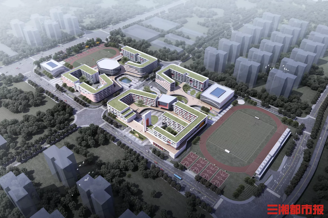 学校位于梅溪湖国际新城中轴线旁,建设规模为高中72个班,可容纳学生3600人。