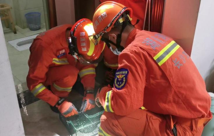 5 月 22 日 6 时 33 分,望城消防救援站接到支队指挥中心调度:位于望城区大泽湖街道红建滨水铭城发生蛇扰民事迹,望城消防救援站立即出动一台抢险救援消防车,7 名消防救援人员赶赴现场处置。