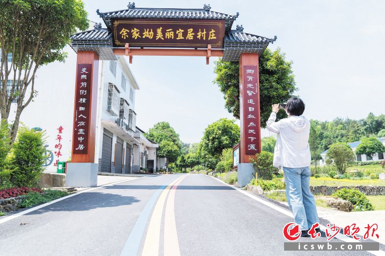 离开板仓社区,继续前行,来到杨开慧故居周边的开慧村余家坳组,硕大的门楼十分吸睛,上书“乡有先贤,追日血为天下洒;史无前例,种田人在画中居”,横批“余家坳美丽宜居村庄”。开慧镇的楹联文化建设,就是从这里的26户村民起步的。