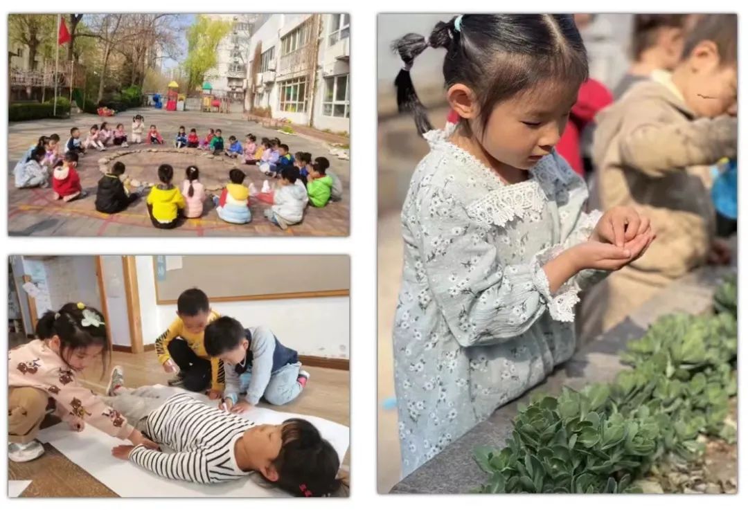 所以,我们的幼儿园,一定要让孩子从身体出发,这也是我们生活化课程完全打破学习的空间感的一种创新。在花草园,我们创造了各种学习空间。孩子们可以在幼儿园里走来走去,这个季节,他们所有的学习可以都在户外开展。有一个词,叫“形散而神不散”,当我们“神”始终围绕着一个目标、一个线索来展开时,“形”可以是多元的。