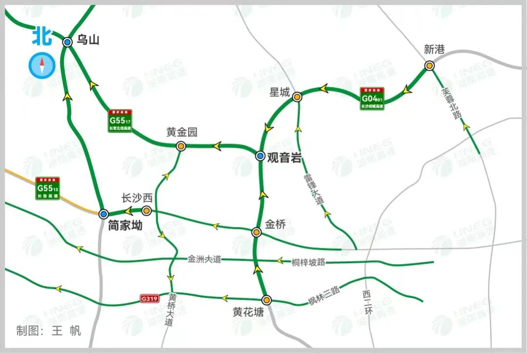 长张高速长沙段友仁、关山、金洲、宁乡收费站往西方向入口匝道和长张高速益阳段益阳、泉交河收费站往西方向入口匝道,实施管制,不能上下高速。