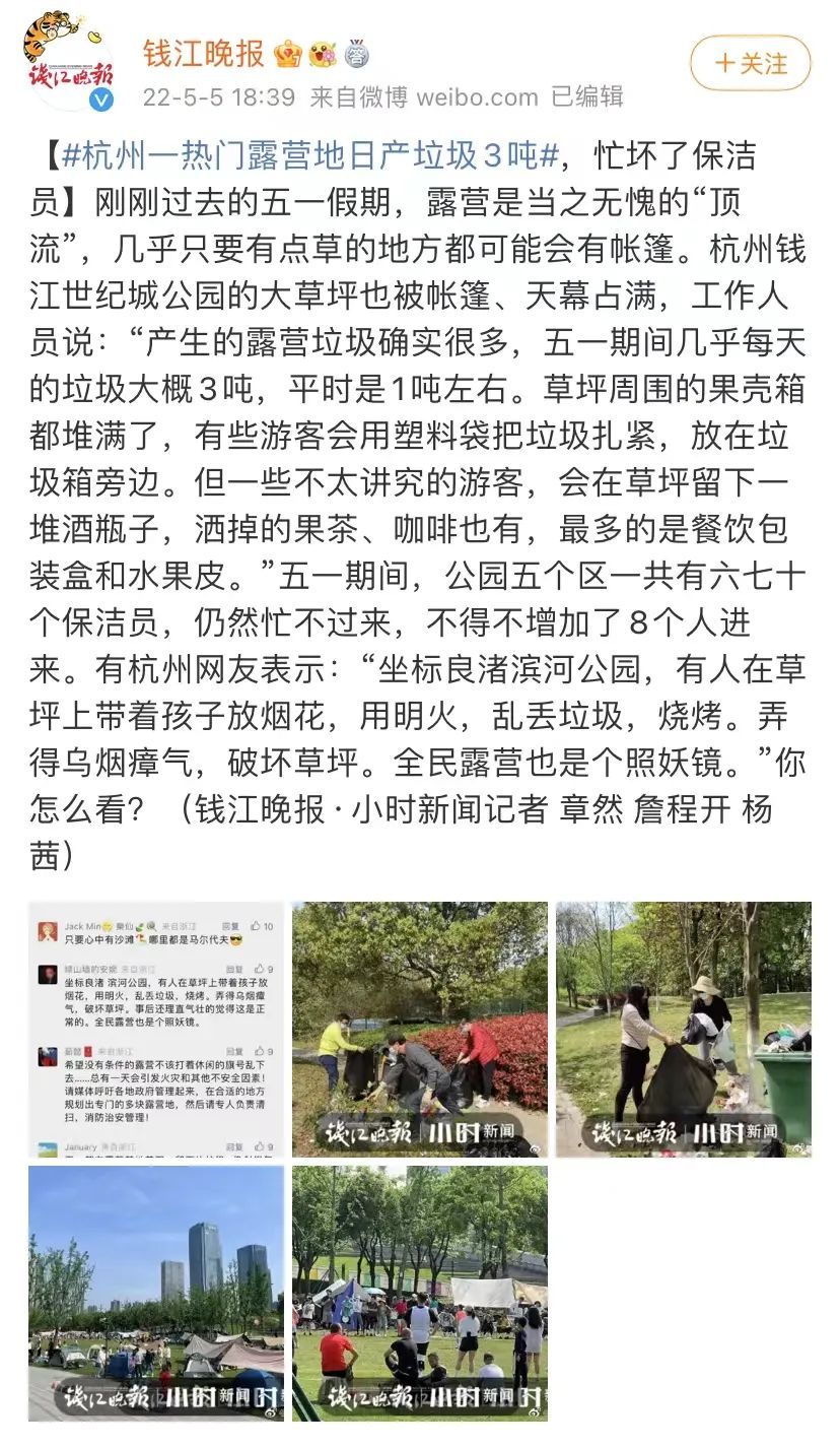 侃财君注意到,“五一”假期后,与“露营热”一块被提出的还有垃圾满地、对环境造成破坏、影响居民正常生活等问题,户外防护、应急管理等知识也亟须普及。