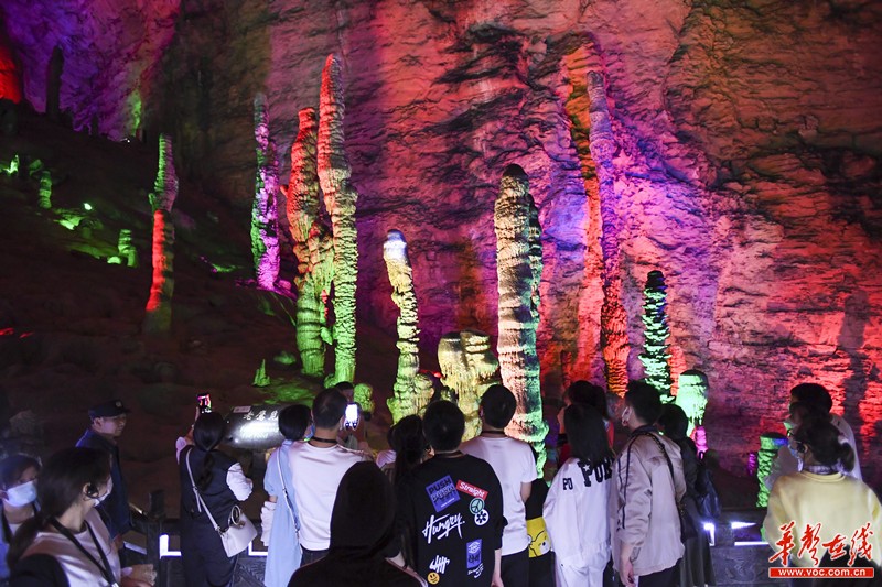 5月2日,张家界武陵源黄龙洞景区,游客在观光游玩。“五一”假期,在对湖南省内居民实行景区门票免票优惠政策的刺激下,武陵源景区成为众多游客出游打卡的首选,迎来客流高峰。 湖南日报全媒体记者 辜鹏博 通讯员 吴勇兵 摄影报道