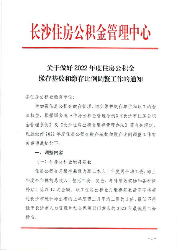 《通知》明确,住房公积金月缴存基数为职工本人上年度月平均工资,即上年度全年税前总收入(包括工资、奖金、年终绩效奖励和各种津补贴)除以12之金额。职工住房公积金月缴存基数最高不得超过长沙市统计局公布的上年度职工月平均工资的3倍,最低不得低于长沙市人力资源和社会保障部门发布的2022年最低月工资标准。