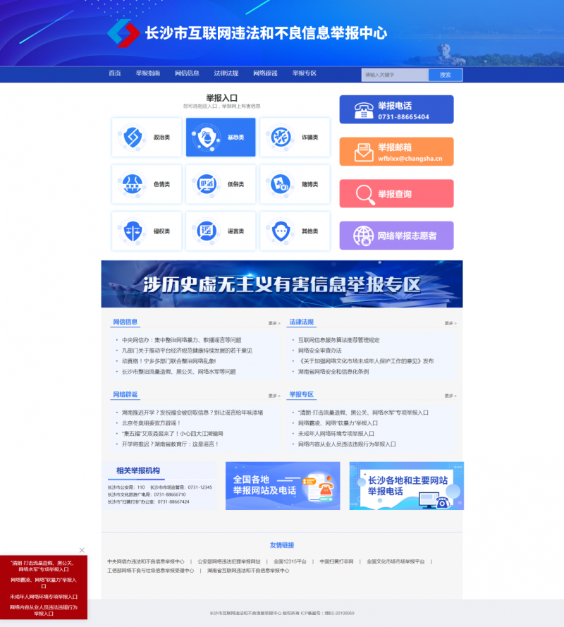 28日,长沙市互联网违法和不良信息新版举报平台上线。均为市委网信办供图