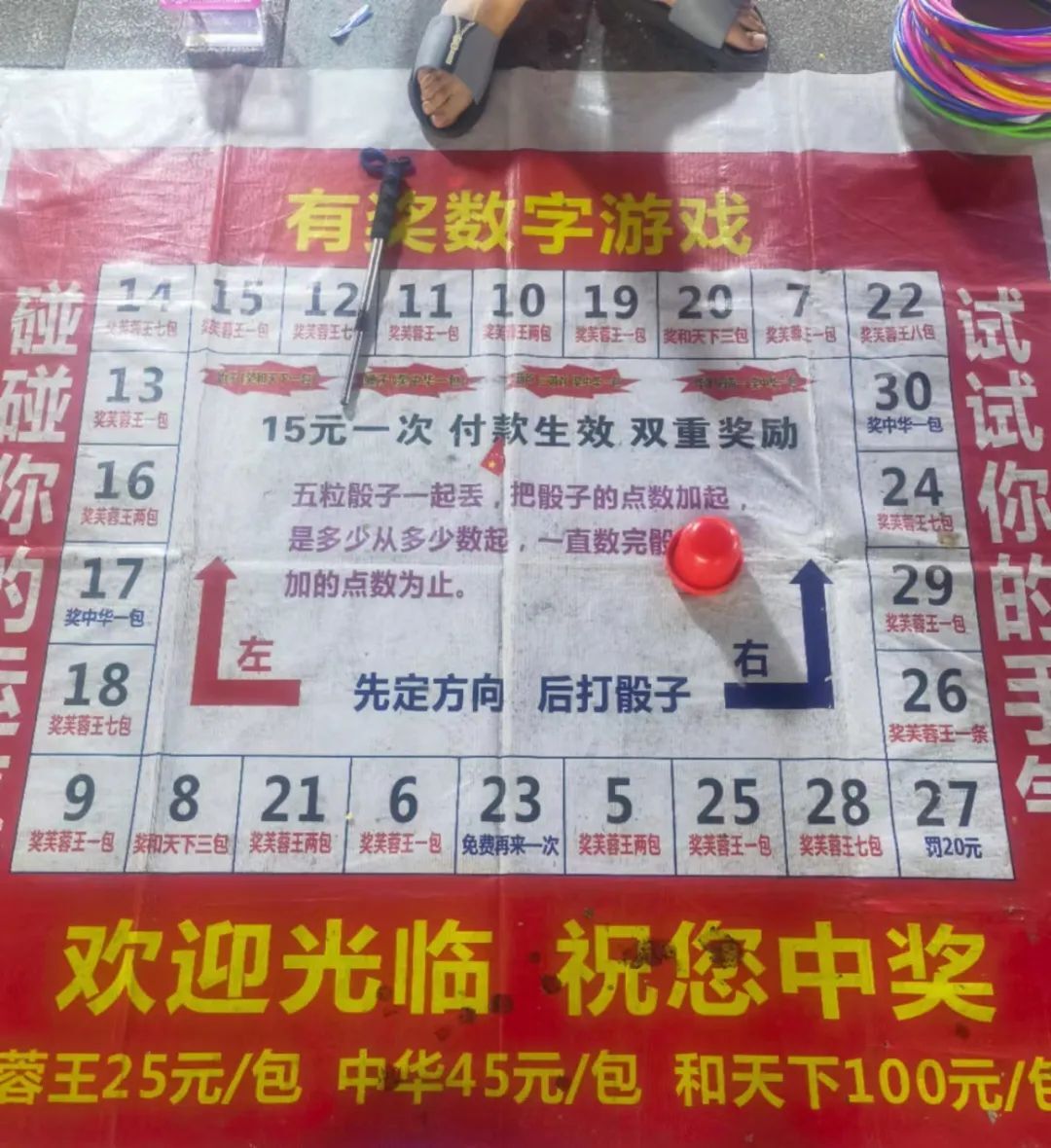 吴先生告诉潇湘晨报记者,他觉得挺神奇的,“我看摊子上有很多个格子,其中只有一个格子是赔钱的,其余的都是奖励。我认为可以小赚一笔,没想到不仅没赚,反而一把没赢。”