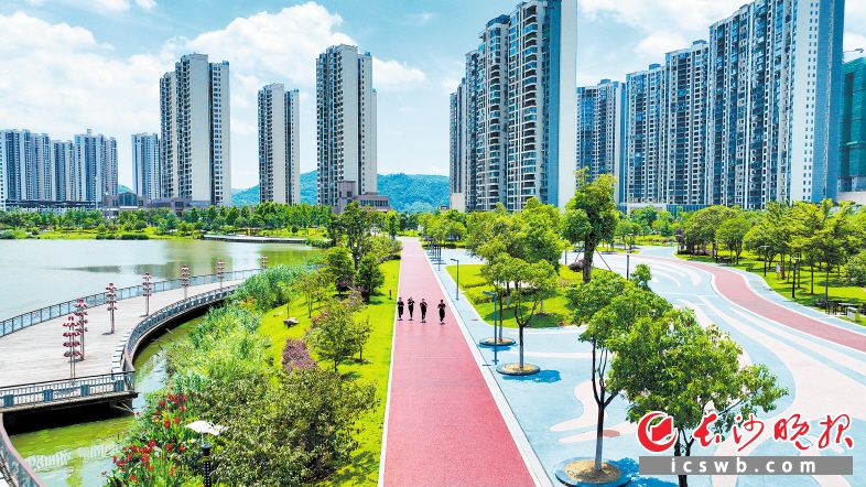 夏日的清晨,在亮丽的智慧跑道跑上一圈,身心舒爽。长沙晚报通讯员 邓霞林 摄