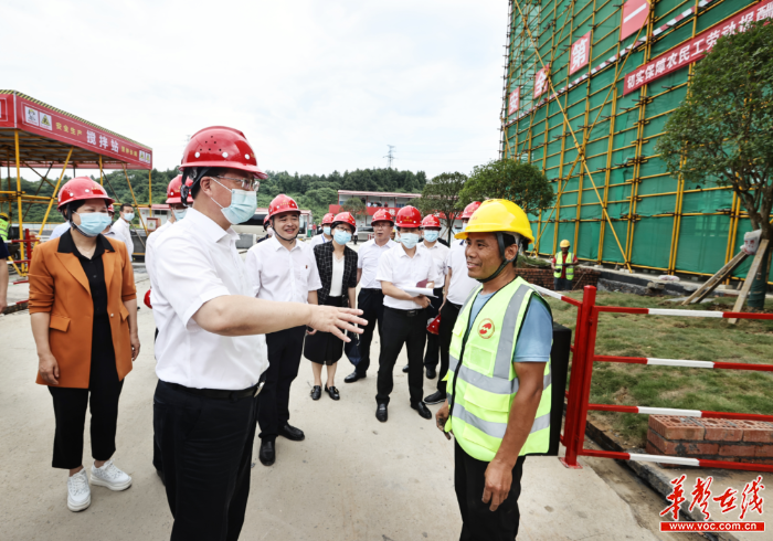 (6月24日下午,省委副书记、省长毛伟明来到湘西州消防“四合一”工程建设现场,了解农民工工资保障情况。)