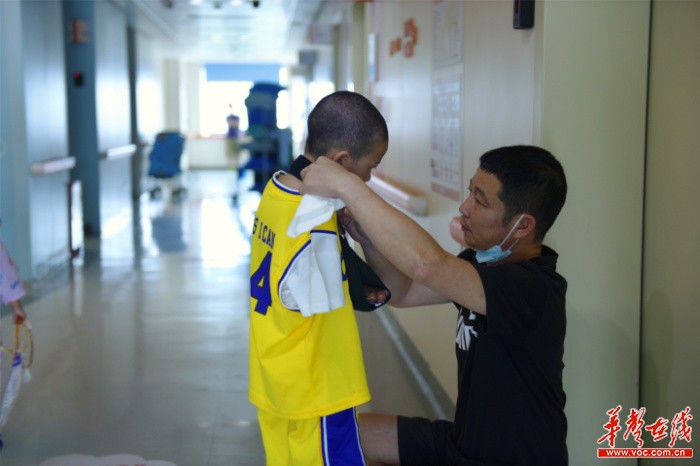 华声在线6月21日讯(通讯员 姚家琦 记者 邓桂明)“我很想念哥哥,我要和他去打篮球。”6月21日,在湖南省儿童医院,来自湖南省邵阳市的8岁男孩小明换上印有24号数字的篮球服准备出院。两个多月前,小明意外被高压电击伤,右手已经截肢。出院后,小明面临着人生更大的考验。