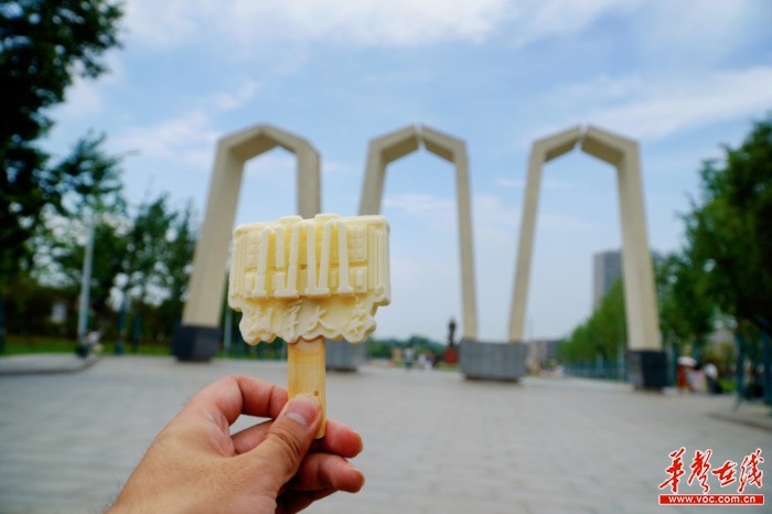 雪糕主体为该校校门三道拱门、图书馆等地标建筑,三道拱门与图书馆呈透视效果,下方为毛主席题写的“湘潭大学”校名。雪糕包装正面采用四角构图,背面是校训“博学笃行,盛德日新”。口味为经典的香草味,无论是糕体设计还是包装,都体现了浓郁的湘大风格。