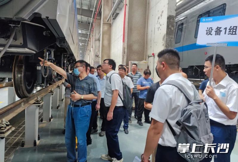日前,长沙地铁6号线工程通过初期运营前安全评估,具备初期运营条件。图为专家组一行正在对车辆进行抽查测试检验。长沙轨道供图
