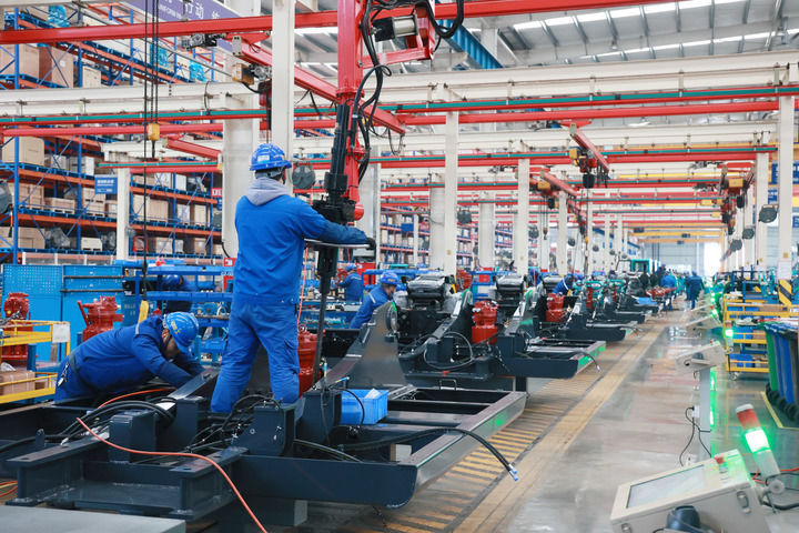 2月7日,湖南山河智能装备股份有限公司的工作人员在车间调试设备。新华社发(受访者供图)