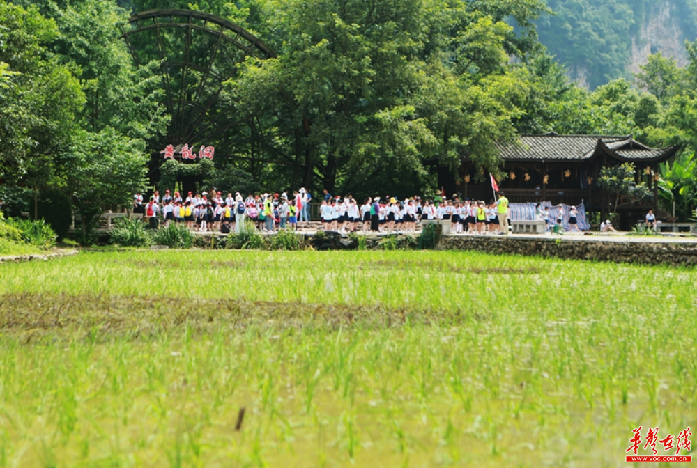华声在线6月9日讯(通讯员 李远明 记者 赖泳源)时雨及芒种,四野皆插秧。6月9日,芒种节气刚刚过去,张家界黄龙洞景区三十多亩生态田园迎来一年一度的插秧时节,田间地头一派繁忙景象。当天,来自张家界市敦谊小学、崇实小学及北门小学的千余名小学生来到景区观摩学习,体验农耕,感悟生活。