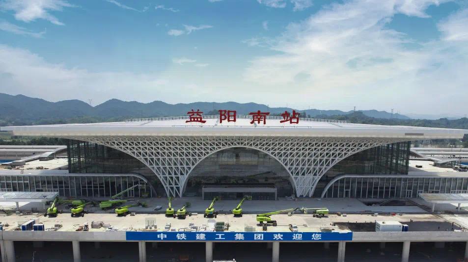 据介绍,新建常益长铁路益阳南站位于湖南省益阳市赫山区寨子仑片区,站房主体为 3 层,局部 4 层,站场规模 6 台 18 线。站房建筑面积约为 3.6 万平方米,是 " 八横八纵 " 高速铁路主通道中重要连接点。益阳南站建成后将串联长株潭城市群和洞庭湖城市组团,助力中部崛起。
