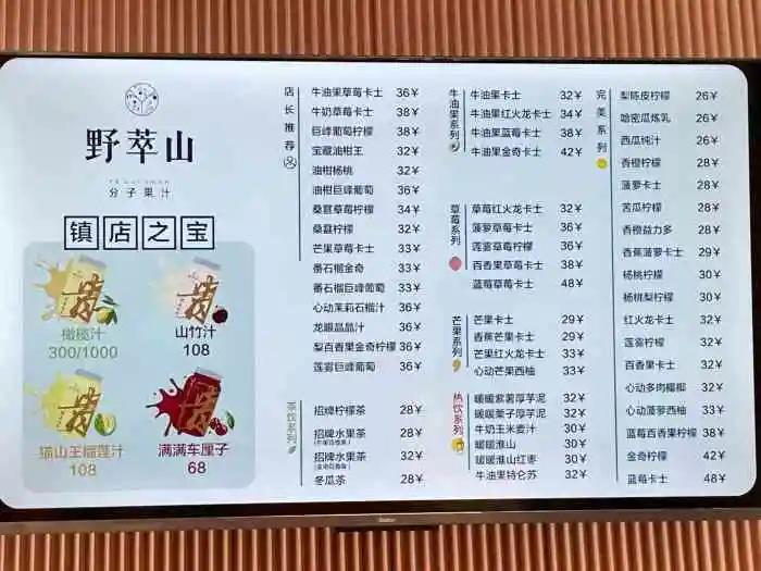 记者注意到,除了这两款招牌,其他的饮料其实价格相对正常,一般都在 25-36 元的区间内,其中一款 " 芒果猫山王榴莲特仑苏 " 价格 68 元,是该店价格第二的单品。