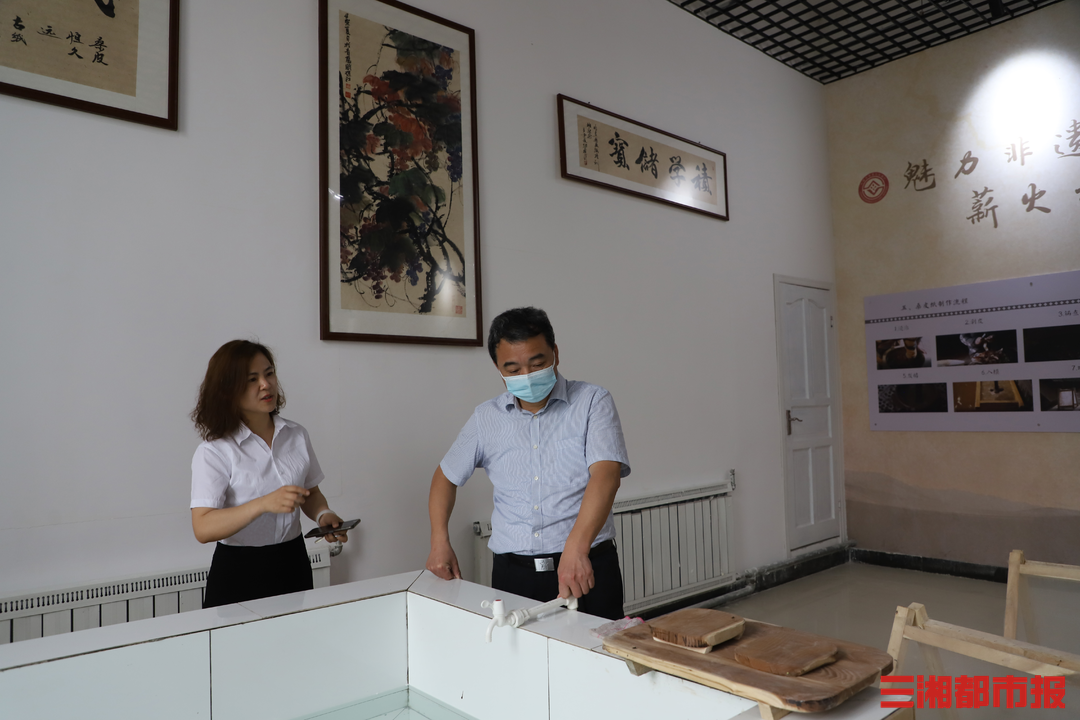 华声在线6月6日讯(通讯员 杨路平 全媒体记者 刘镇东)“大家看到的水缸、煮锅、纸模、锤捣台、抄纸槽就是我们桑皮纸的重要制作设备……”近日,在吐鲁番职业技术学院校内非遗桑皮造纸手工坊正式“开张”,迎来了第一批参观嘉宾。大家饶有兴致地参观了手工坊,详细了解了桑皮纸制作工具的用途、制作步骤以及手工产品。