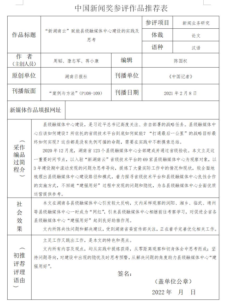 “新湖南云”赋能县级融媒体中心建设的实践及思考