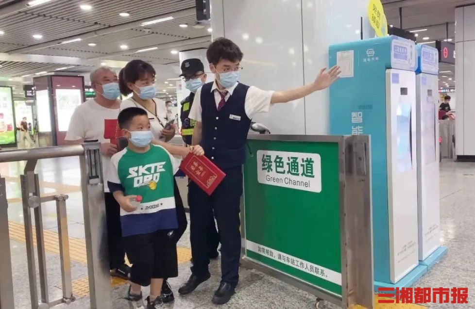 2、进出闸机时,家长请将儿童抱起,避免夹伤,如携多名儿童乘车或携带体积较大的婴儿车,可联系车站工作人员从绿色通道通行。