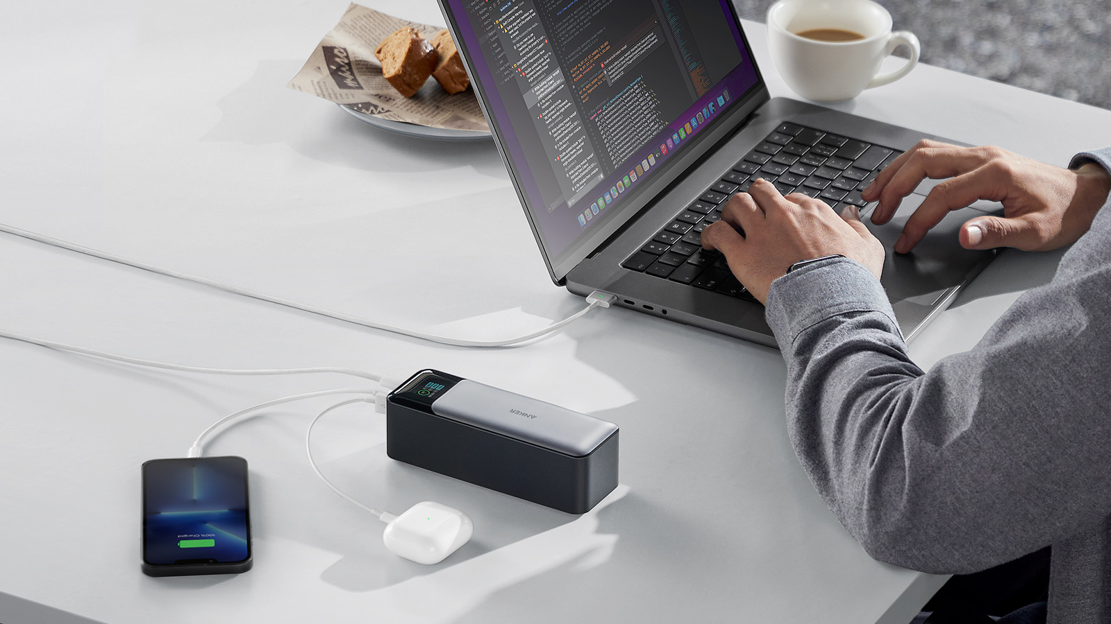 眼下,移动设备持有量快速增长,消费者对于大功率、多设备同时充电的追求逐渐提升。安克创新瞄准市场需求,此次发布的4款充电器、2款移动电源和1款插座新品,属于“全氮化镓”充电系列,体积更小、充电更快、安全性更高,其中全氮化镓150W充电器能同时满足4台设备全速充电。