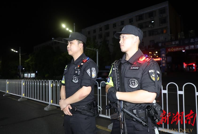 (益阳市公安局高新分局民警在卡点盘查。王浩 摄)