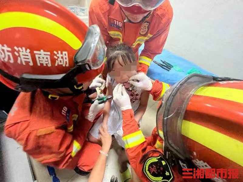 华声在线7月25日讯(文/视频 全媒体记者 张洋银 通讯员 颜雨彬 李伟民)24日晚,湖南永州祁阳市一小女孩在吸舔易拉罐内饮品时,不慎被卡住舌头,送往祁阳市人民医院。医生请求消防救援,消防员上演了一场“舌尖上的救援”。
